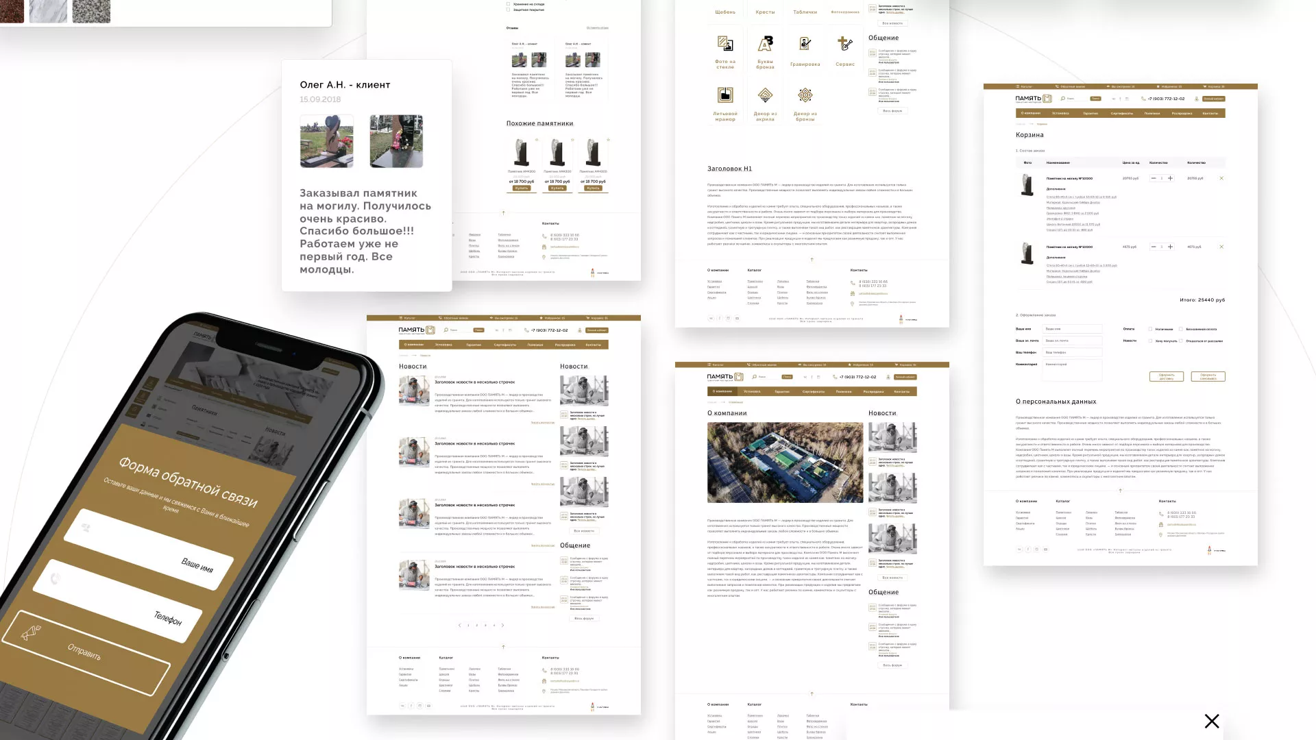 Разработка логотипа, фирменного стиля и сайта в Вёшках для компании «Память-М». Компания является предприятием по изготовлению всех видов надгробных сооружений: памятников, цоколей на могилу, оградок, столов, лавочек, ваз, балясин, плитки, мемориальных комплексов. Компании «Память-М» изготавливает все виды мемориальных изделий на собственном производстве в Вёшках.